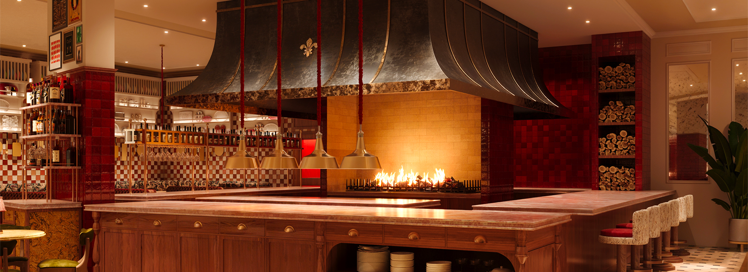 At the heart of it all? A fireplace — raw and radiant, burning with a single mission: to feed you with its wood-fired flames.